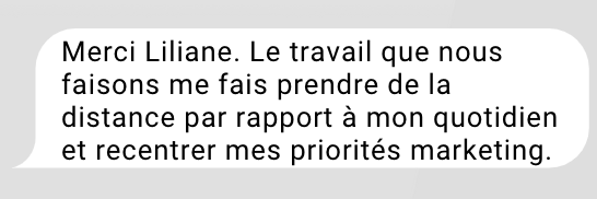 Tu pourras également me soumettre un document ou un livrable à analyser lors de chaque session, pour t’assurer que tout reste aligné et fluide. Cet accompagnement te permet de rester sur la bonne voie, en toute sérénité.