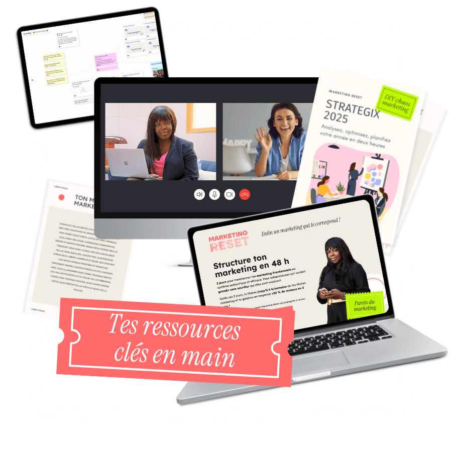 Marketing Reset, c'est l'accompagnement complet qui fait le tri dans ton marketing pour que tu retrouves clarté, efficacité et sérénité.